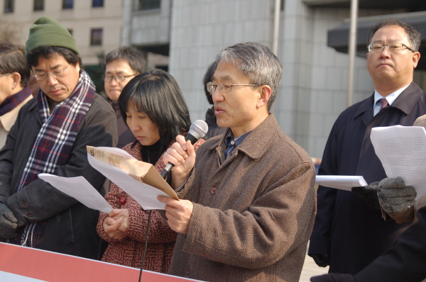 이희용 부회장은 “이명박 대통령은 대선 때 ‘21세기미디어위원회’를 구성해 미디어문제에 대해 사회적 토론을 벌이겠다고 공약한 바 있다”며 “우리의 요구는 새로운 것이 아니라 대선 당시 공약을 지키라는 것”이라고 말했다.