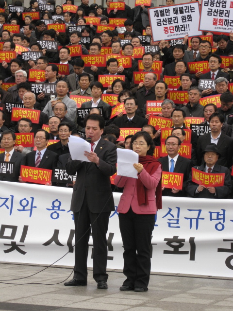 민주당, 창조한국당, 민주노동당, 진보신당 등 야 4당과 시민사회단체들은 서울 여의도 국회 본청 앞에서 'MB 악법 저지와 용산 참사 진실 규명을 위한 공동 결의대회'를 열고 미디어관련법 등 이른바 ‘MB악법’ 국회 통과를 저지하겠다고 24일 밝혔다. 용산참사 진실 규명을 위한 국정조사와 특검 실시도 촉구했다.