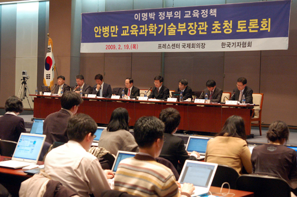 ▲ 지난 19일 서울 중구 태평로 한국프레스센터에서 열린 안병만 교육과학기술부 장관 초청 토론회. |