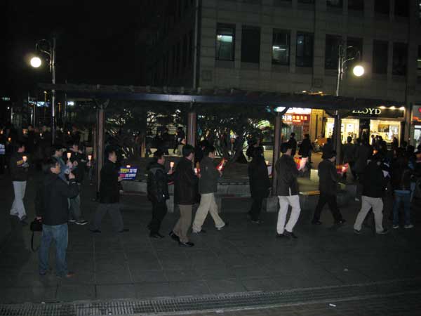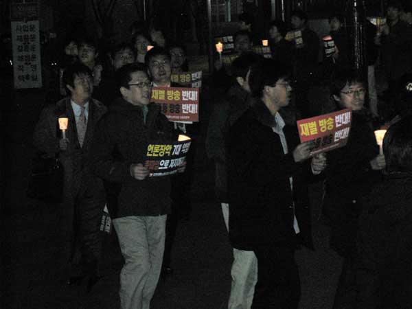 SBS와 CBS 노조는 26일 오후 8시 서울 목동 현대백화점 일대에서 ‘촛불 행진’을 갖고 한나라당의 미디어관련법 상정을 규탄하는 거리 선전전을 펼쳤다.