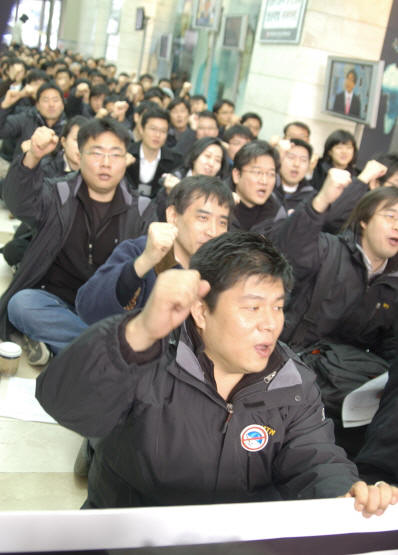 심석태 위원장은 “비상총회에 나서면서 우리의 결의와 투쟁을 다시 일으켜 세우는 출발로 삼고 싶다”며 “회사가 지난주 열린 주주총회에서 조합원의 인건비 등을 낮춰 극복책을 마련하겠다고 했으나 그 전에 단 한 차례도 사원의 의견을 묻지 않았다. 경영투명성을 약속하며 노조가 추천한 사외이사를 감사위원에 선임한다던 약속도 파기했다”고 말했다.