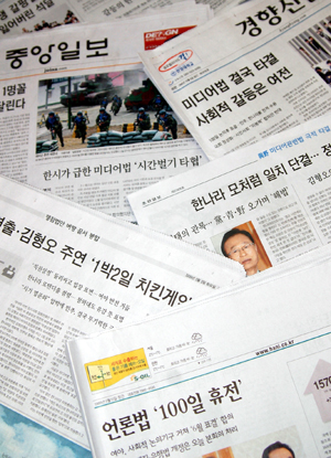 반면 중앙은 같은 날 사설 ‘파국은 피했지만…폭력과 편법으로 얼룩진 국회’에서 “여야는 대기업의 방송 참여지분을 0%로 하는 수정안도 거론했는데 이것도 미디어산업 발전이라는 본래의 취지에 어긋나는 것”이라며 불만을 드러냈다.