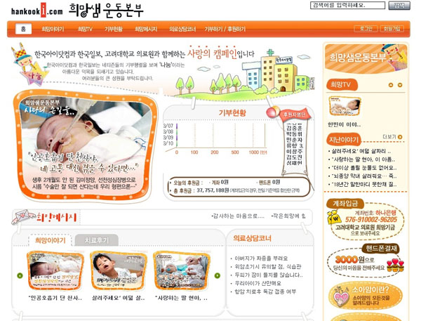 그동안 오프라인이 중심이 돼 펼쳤던 모금운동과 달리 온라인 매체가 중심이 된 것은 극히 이례적인 일. 더구나 단기간에 끝났던 다른 모금운동과 달리 인터넷한국일보는 한국일보, 고려대병원 등과 협력해 4년째 지원 사업을 펼치고 있다.