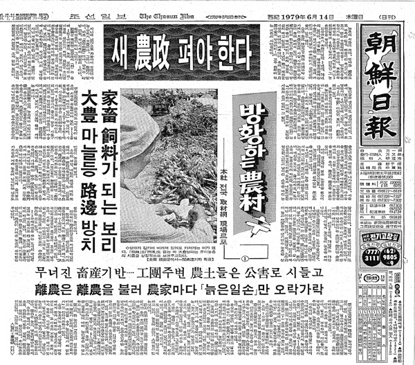 결국 조선일보가 전국에 취재망을 동원, 작심해서 기획했던 ‘방황하는 농촌’ 시리즈는 1회만 나가고 연재가 좌절됐다. 급속한 산업화로 피폐화된 농촌에 대한 정책적 지원이 필요하다는 언론의 메시지를 박정희 정권은 받아들이지 않았다. 그리고 그 정권은 5개월도 안된 그해 10월26일 궁정동에 울린 여러 발의 총소리로 종말을 고했다.