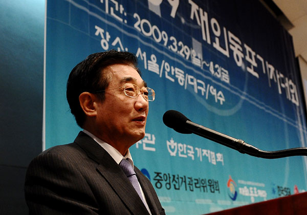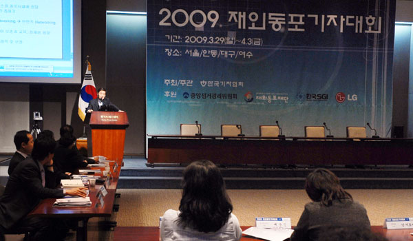 | ▲ 재외동포재단 권영권 이사장이 30일 오전 '한국기자협회 주최-2009 재외동포기자대회'가 열린 서울 중구 프레스센터에서 환영사를 하고 있다. | ||