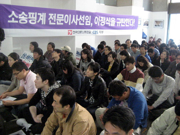 CBS 노조(위원장 양승관)는 28일 조합원 총회를 열어 이정식 사장의 전문이사 선임에 관해 “거짓된 근거로 이사들을 기망한 책임을 지고 이 사장은 자진 사퇴하라”고 촉구했다.