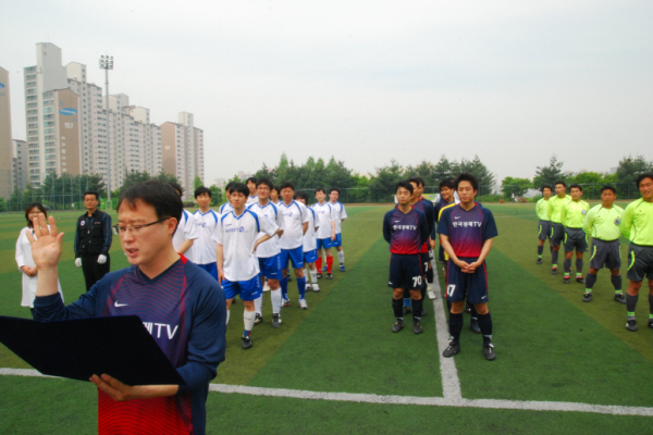 오전 10시 중산구장에서는 지난해 우승팀인 한국경제TV와 아이뉴스24의 후반전이 진행되고 있다. 한경TV가 후반 들어 한골을 넣어 우위를 점하며 경기를 이끌고 있다.