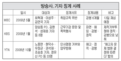 MBC는 신경민 뉴스데스크 앵커 교체에 반발하며 제작거부를 벌인 기자 3명에 대한 징계에 착수했다. 당초 11일 인사위에서 감봉 6개월의 징계 조치를 결정했으나 엄기영 사장이 “과하다”는 입장을 밝히면서 13일 재심이 열린다.