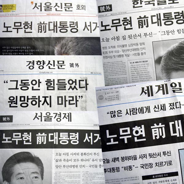 경향 국민 동아 등 호외배포…매경·서경 발빠른 대처 ‘눈길’신문사들은 노무현 전 대통령 서거와 관련, 호외나 일요판을 발행했다.