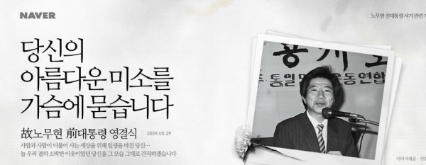 이들 포털 사이트는 노무현 전 대통령 서거 관련 특별 코너에서 영결식이 거행되고 있는 경복궁 현장도 생중계(YTN 제공) 하고 있다. 누리꾼들 사이에서는 자체 혹은 포털에서 제공한 추모 배너도 달기도 유행처럼 번지고 있다.