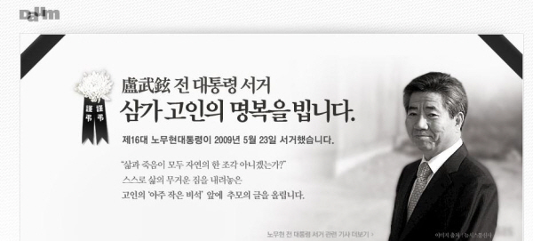 다음은 ‘당신이 가시는 길, 쓸쓸하지 않게 우리 모두가 함께 하겠습니다-영결식 함께하기’라는 코너를 만들었다. 클릭 후 뜨는 창에는 “노무현 전 대통령 서거 삼가 고인의 명복을 빕니다...고인의 ‘아주 작은 비석’ 앞에 추모의 글을 올립니다”라는 타이틀로 추모 게시판을 제작, 21만여건의 추모글이 속속 올라오고 있다.