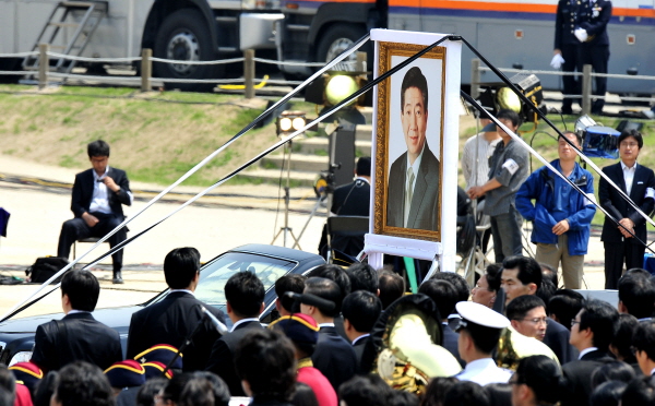 | ▲ 29일 故 노무현 전 대통령 국민장 영결식이 서울 경복궁앞 광장에서 열린 가운데 영결식장으로 영정이 들어오고 있다. (뉴시스) | ||