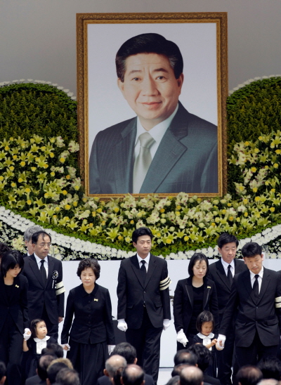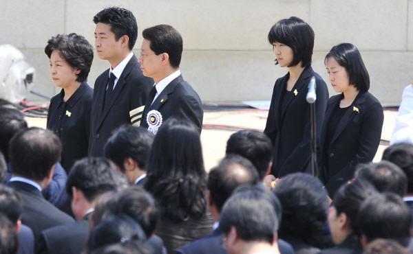 | ▲ 29일 故 노무현 前 대통령 국민장 영결식이 서울 경복궁앞 광장에서 열린 가운데 권양숙 여사를 비롯한 유족들이 헌화를 마치고 자리로 들어서고 있다. 권 여사 주변으로 아들 건호씨, 딸 정현씨, 형 건평씨 등이 슬픈 표정으로 자리로 돌아가고 있다. (뉴시스) | ||