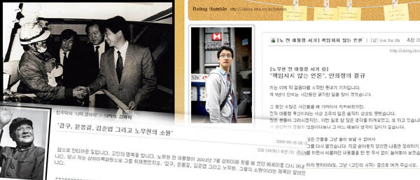 “젊은 노무현, 그를 추모한다”조선일보 박종인 기자(인터넷뉴스부)는 자신의 블로그에 노 전 대통령이 서거한 23일부터 5개의 게시물을 연이어 올렸다. 서거 소식이 전해진 첫날 박 기자는 고인의 인권변호사 시절 흑백사진과 함께 ‘젊은 노무현, 그를 추모함’이라고 올렸다. 25일에는 ‘별들의 부음과 젊은 노무현’이란 게시물에 곽재구 시인의 시 ‘사평역에서’와 함께 애도의 뜻을 나타냈다.