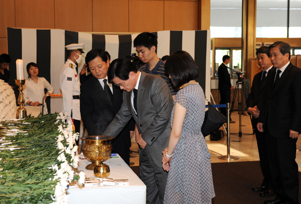 ▲ 이병순 KBS 사장이 지난달 27일 유광호 부사장, 이동섭 경영본부장 등과 함께 서울역사박물관에 마련된 노무현 전 대통령 분향소를 찾아 조문하고 있다.(KBS 제공) |