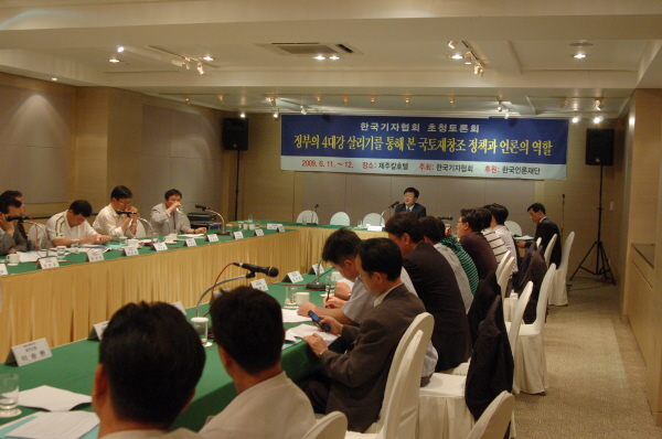 한편 운영위원회에 앞서 심명필 4대강 살리기 추진본부장과 최정암 매일신문 경제부장, 박상원 광주매일 경제부장, 박치현 울산MBC 보도국 부장, 전경수 성균관대 교수가 패널로 참석한 가운데 ‘정부의 4대강 살리기를 통해 본 국토재창조 정책과 언론의 역할’ 초청 토론회가 열려 정부의 4대강 살리기 정책과 관련된 각 현안과 우려에 대해 토론을 벌였다.
