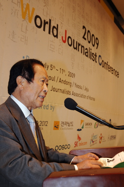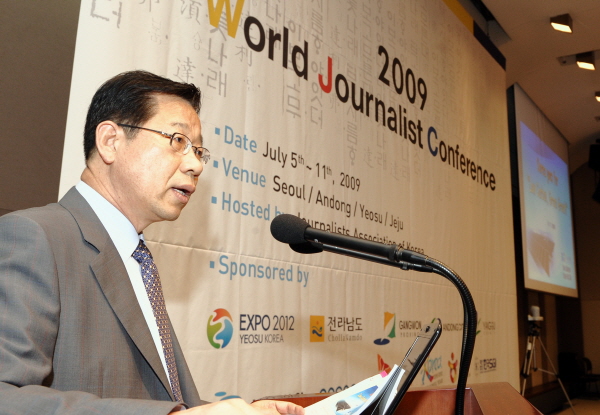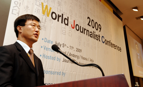 | ▲ 김경호 한국기자협회장이 '2009 세계 저널리스트 컨퍼런스' 개막식에서 인사말을 하고 있다,(뉴시스) | ||