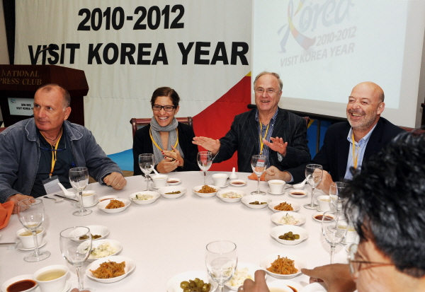 | ▲ '2009 세계 저널리스트 컨퍼런스'에 참석한 기자들이 한국관광공사 주최 오찬에서 즐거운 시간을 갖고 있다. | ||
