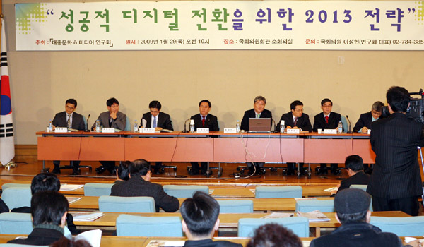 ▲ 지상파 방송사들이 막대한 투자비용 부담 등으로 계획대로 2013년부터 디지털 방송을 시작할 수 있을지 우려하는 목소리가 크다. 사진은 국회에서 열린 디지털 전환 토론회 장면.(연합뉴스) |