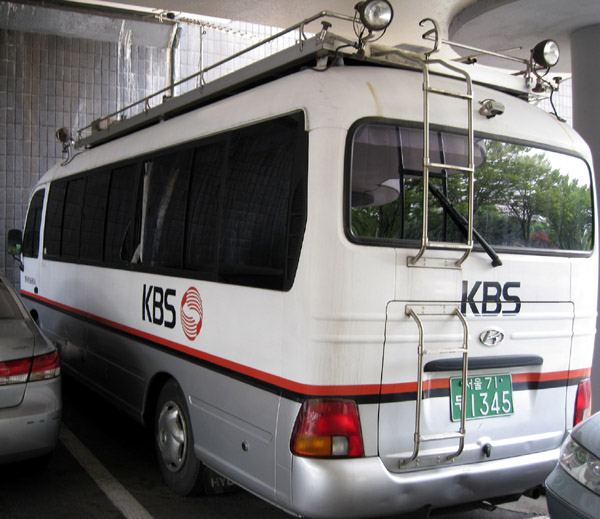 ▲ KBS 법조팀이 임시 기자실로 쓰고 있는 미니버스는 서초동 중앙지검 민원실 올라가는 계단 아래쪽 응달에 자리 잡았다. |