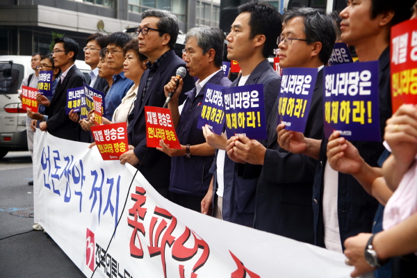 언론노조는 한나라당의 미디어법을 반대하며 지난해 12월과 올해 2월 두 차례 총파업을 벌인 바 있다.