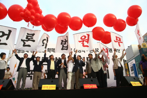 이들은 국민선언문에서 “김형오 국회의장과 이윤성 부의장, 안상수 한나라당 원내대표 등을 ‘언론악법 원흉’으로 규정하고 책임을 물을 것이며 10월 국회의원 보궐 선거와 내년 지방선거에서 이명박 대통령과 한나라당을 심판하겠다”고 밝혔다.