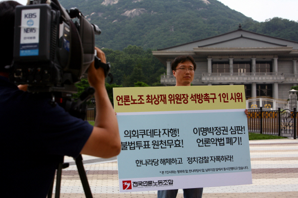 언론노조 소속 지·본부장 및 간부들은 이날 청와대와 여의도 한나라당사 앞, 남부지방법원 등 3곳에서 각각 ‘최상재 언론노조 위원장 즉각 석방’과 ‘이명박 정권 규탄 및 언론악법 철폐’를 주장하며 릴레이 1인 시위를 펼쳤다.