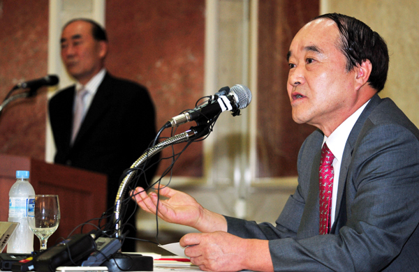 ▲ 김우룡 방송문화진흥회 신임 이사장이 13일 오전 여의도 렉싱턴호텔에서 기자간담회를 갖고 있다. (뉴시스) |