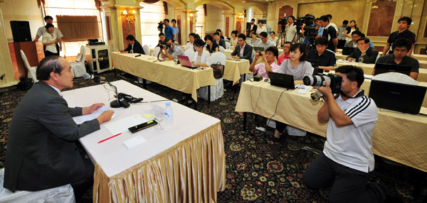 ▲ 김우룡 방송문화진흥회 신임 이사장이 지난 13일 오전 여의도 렉싱턴호텔에서 기자간담회를 갖고 있다.(뉴시스) |