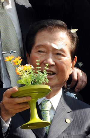 ▲ 지난 4월23일 전남 함평군 나비곤충생태박물관을 방문해 나비를 날리며 즐거워하던 고 김대중 대통령의 모습.(뉴시스) |