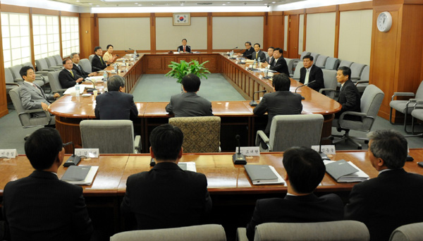 ▲ 새로 구성된 KBS 이사회는 이병순 사장의 연임 여부, 수신료 인상 등 굵직한 현안을 해결해야 한다. 사진은 1일 열린 첫 이사회 장면. (사진 제공=KBS) |