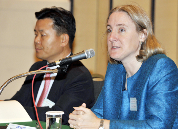 ▲ 24일 오후 제주 KAL호텔에서 열린 2009년 제1차 지자체 브랜드 강화를 위한 공보 담당자 전문가 과정 프로그램에서 리사 헬러(Lasa K. Heller) 주한미국대사관 부공보참사관이 '미국의 공보정책과 공보담당자의 역할' 주제로 강연을 하고 있다.(뉴시스) |