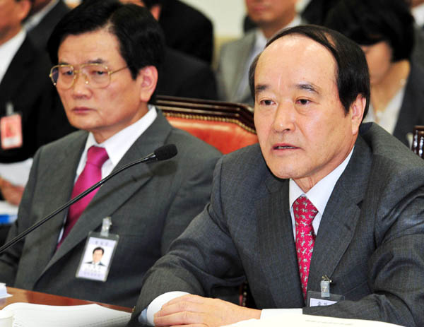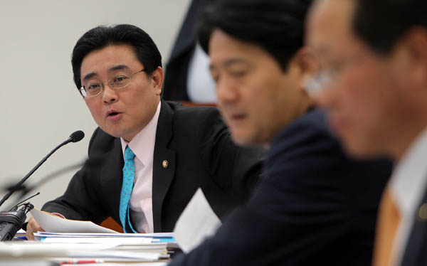 ▲ 민주당 전병헌 의원이 12일 국회에서 열린 문화체육관광방송통신위원회 KBS, 방송문화진흥회, EBS 국정감사에서 KBS 이병순 사장에게 질의하고 있다. (연합뉴스) |