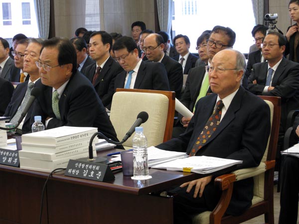 ▲ 15일 프레스센터에서 열린 국회 문화체육관광방송통신위원회 국정감사에서 신문발전위원회 김호준 위원장(사진오른쪽)이 의원들의 질의를 경청하고 있다. |