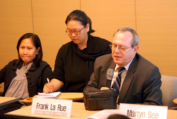 지난 12일 방한해 ‘의사표현의 자유에 관한 유엔 특별보고관 초청 워크숍’에 참가했고 박원순 희망제작소 상임이사와 외교통상부, 국가인권위원회 등을 방문했다.