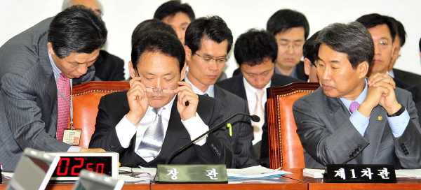 ▲ 23일 오전 국회 문화체육관광방송통신위원회에서 열린 문화체육관광부, 문화재청 국정감사에서 유인촌 문화체육관광부장관이 답변자료를 보고 있다.(뉴시스) |