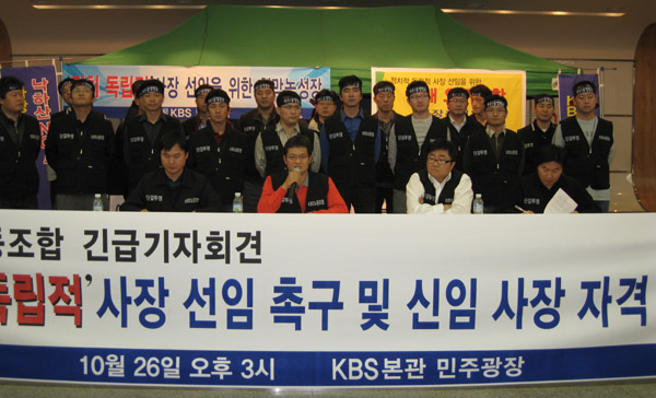 노조는 이날 KBS사장 5대 불가 후보로 정치권 연루자, 반 공영론자, 각종 비리 연루자, 방송·경영 비전문가, 불통·갈등 조장자 등을 들었다. 그러면서 KBS 이사회에 사장추천위원회 운영과 특별다수제 적용, 사장 공모제 실시, 공모 신청자 공개, 평가 기준 제시, 공개 면접 실시 등 6대 사항을 요구했다.