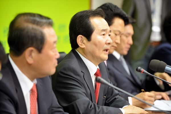 정세균 민주당 대표는 30일 당 확대간부회의에서 “헌재가 인정한 절차적 위법을 해소하기 위해 미디어법을 전면 재논의해야 한다”고 밝혔다.
