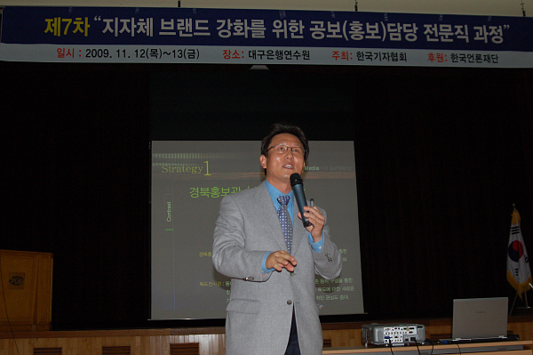 한국기자협회(회장 김경호)는 12·13일 경상북도 칠곡군 대구은행 연수원에서 지자체 공보 담당 70여명이 참석한 가운데 ‘제7차 지자체 브랜드 강화를 위한 공보(홍보) 담당자 전문직 과정’을 개최, 성황리에 마쳤다.