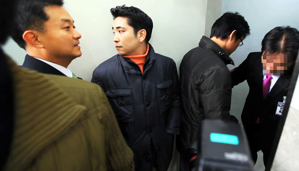 | ▲ YTN 해직기자들이 용역원들의 저지에 막히자 비상엘리베이터로 이동해 출근을 시도하고 있다. 용역원들은 엘리베이터를 막아서는 동시에 전원을 꺼 운행을 중단시켰다. | ||