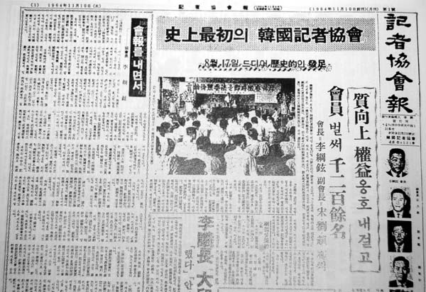 기자협회보는 한국 언론사의 물줄기를 증언해왔다. 사진은 기자협회보 1964년 창간호의 1면. |