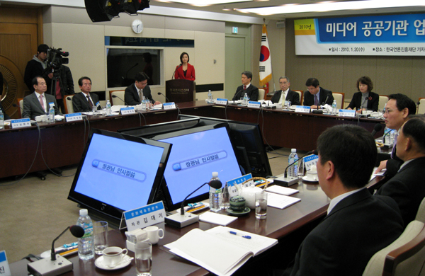▲ 20일 한국프레스센터 19층 기자회견장에서 한국언론진흥재단 등 미디어공공기관의 2010년 업무보고가 열렸다. |