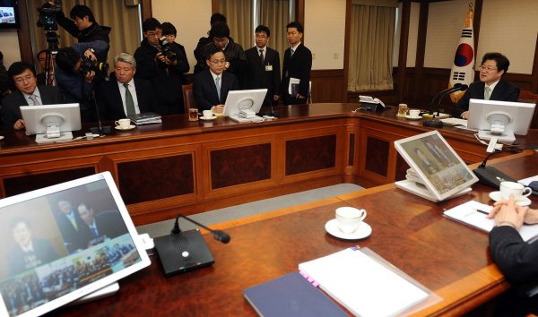 | ▲ 법원과 검찰의 갈등을 보도하는 언론의 태도가 지나치게 이념적이라는 지적이 나오고 있다. 사진은 21일 김준규 검찰총장 주재로 서울 서초동 대검찰청 회의실에서 열린 전국검사 화상회의.(뉴시스) | ||