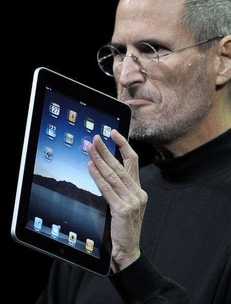 ▲ 27일(현지시간) 애플의 스티브 잡스 최고경영자(CEO)가 샌프란시스코 예르나부에나 센터에서 9.7인치 태블릿 PC ‘아이패드’를 소개하고 있다. (신화/뉴시스) |