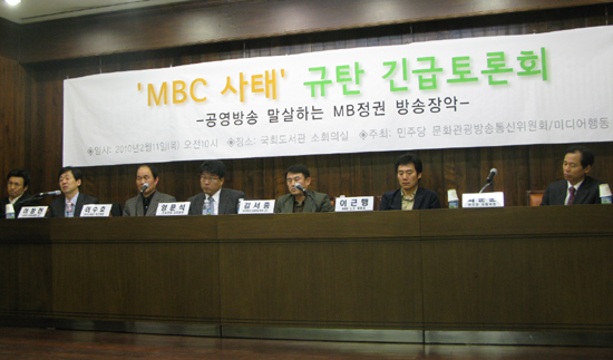 | ▲ 11일 국회 도서관에서 열린 'MBC 사태 긴급토론회'에서 참석자들이 토론을 벌이고 있다.(사진=미디어스) | ||