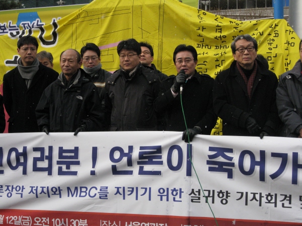 전국언론노동조합, 미디어행동, 언론소비자주권국민캠페인 등 언론시민단체들과 야당 국회의원들은 12일 서울역 용산역 등 전국 20여개 지역 역 터미널 공항 등에서 ‘언론장악 저지와 MBC를 지키기 위한 설귀향 기자회견 및 대국민 전국 선전전’을 펼쳤다.