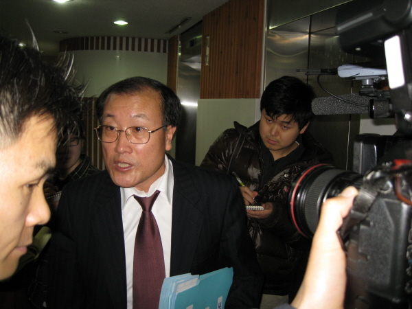| ▲ 김재철 MBC 사장이 4일 오후 서울 여의도 율촌빌딩에서 열린 방문진 이사회에 참석하고 나온 뒤 기자들의 질문에 답하고 있다. | ||