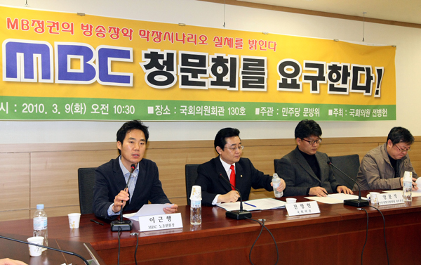 ▲ 이근행 MBC노조위원장이 9일 오전 국회 의원회관에서 열린 `MBC청문회를 요구한다’토론회에서 발언하고 있다.(연합뉴스) |