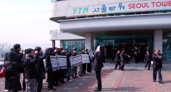 YTN(대표이사 배석규)이 19일 오전 남산 서울타워에서 주주총회를 열고 김 백 보도국장과 홍상표 경영기획실장을 사내 이사로 선임하고 이들을 각각 보도담당 상무이사, 경영담당 상무이사로 임명했다. 노조는 ‘노사관계 파탄의 장본인들’이 이사로 선임됐다며 이 결과를 인정할 수 없다고 반발했다.