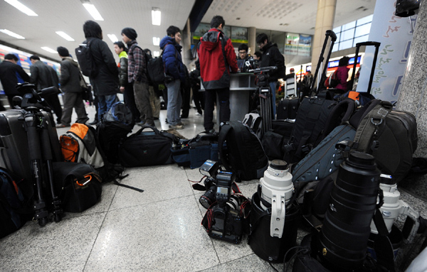 | ▲ 27일 오전 인천항 연안여객터미널에 백령도로 입도하기 위해 대기 중인 취재진들의 장비가 쌓여 있다.(뉴시스) | ||